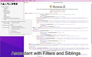 Smart ordering: when a few branches go up to some glorious remote ancestors, while most of the ramifications are cut off, a traditionally ordered tree can become very tortuous; the smart ordering algorithm keeps your tree graphically balanced, harmonious, and easy to traverse.