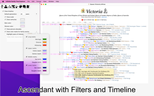 Explore, analyze and print extremely detailed and extensive family tree charts (ancestors or descendants)
