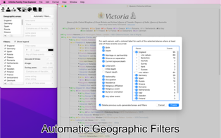 Incredibly powerful filters: visually flag any person who matches some flexible criteria. For example, flag in red those who were born and died in a specific country or region, and in orange those that were born or died or had any other event in this same country. Or flag those who have lost both parents during childhood, those who married more than twice, or those who died in their 20s during wartime.